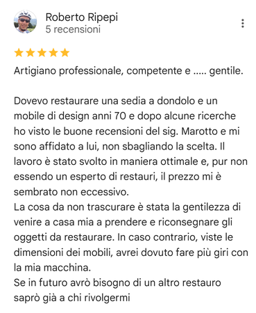 Michele Marotto, da sempre appassionato di arte e antiquariato, è un esperto nel restauro e nella lavorazione del legno. Specializzato nell'uso della gommalacca a spirito, nell'esecuzione di intagli, torniture, sculture, laccature e dorature, Michele è anche impegnato nella ricerca di forme innovative e nel design di mobili unici che possano dare un significato speciale a ogni ambiente della nostra casa.